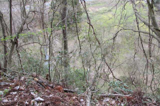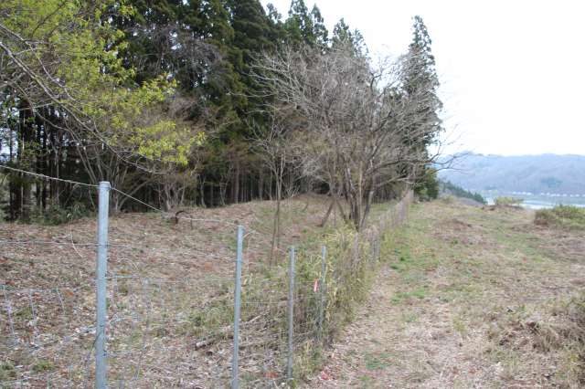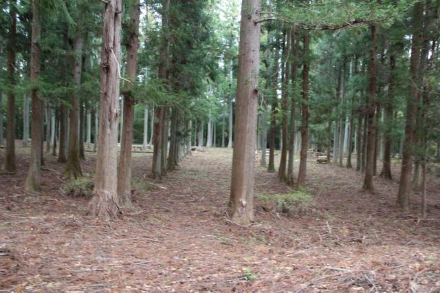 これもなかなか想定外に立派な城郭であった。なおフェンスの意味が不明だが、フェンスを隔てて南側は木が全面的に伐採されているのに対し、北側は木が放置されているところから見ると、地権者の境界ではないかという気がした。北側の地権者はここの材木を資産として活用するつもりがあるのではというように感じる。だから南側が全面伐採されることになった時に、境界を明瞭にするためにフェンスを立てたのではというところが私の推測だが、真相は知らない。
