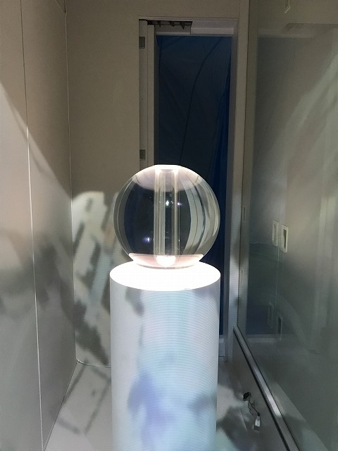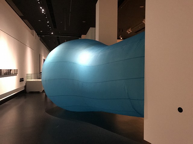 体感立体作品としては松井紫朗の「手に取る宇宙ルーム」なる作品が展示されている。これは内部に入ることの出来る作品だが、狭い室内に何やら水の入った球体が置かれて独得の空間をなしている。その名の通り宇宙船内をイメージしているのだろうか? 何やら国際宇宙ステーションとかを連想する。