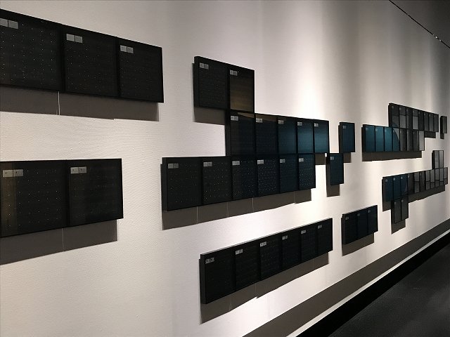 佐々木類は蓄光物質を含んだガラスを暗室に並べた作品を展示。暗闇の中でボンヤリと光るガラスは独得の雰囲気。なおフラッシュを使わないで撮影は可だが、ハッキリ言って真っ暗なのでiPhoneでの撮影はかなり困難。これは肉眼で見るのが一番。最初は何も見えないのが段々と目が慣れてくるとボンヤリと光るガラスがあちこちに見えるようになる。どことなく静寂を感じる作品である。