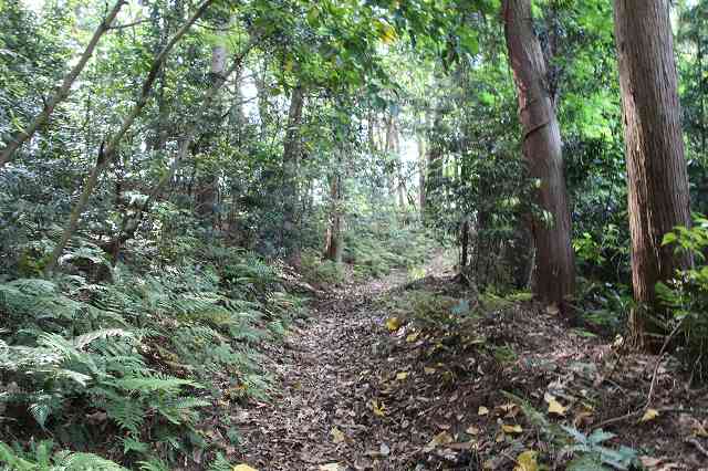 それでもどうにかこうにか10分もかからずに尾根筋に出る。ここから尾根沿いに南下したら古墳群があるらしいが、そんなところに立ち寄っている時間も体力もないので北上して直ちに梶山城の本丸を目指すことにする。