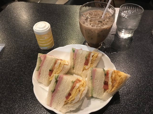 ただまずは遅めの朝食である。久しぶりに「喫茶京」を訪問、ミックスサンドとアイスコーヒーを注文する。