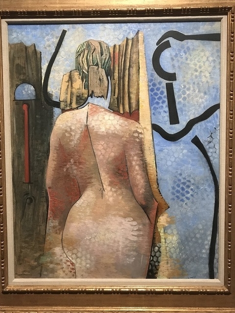 後はシュルレアリスムの定番どころが並ぶ。やはり代表的なところとしてはインパクト大のダリ、さらにはマックス・エルンストにデ・キリコなど「これぞシュルレアリスム」という作家のいかにも作品が並ぶ。さらには近年ではシュルレアリスムと言えば欠かせない不思議絵画のマグリットに、意味不明に唐突にヌードの女性が登場するというイメージのポール・デルヴォーなどの有名どころも登場。
